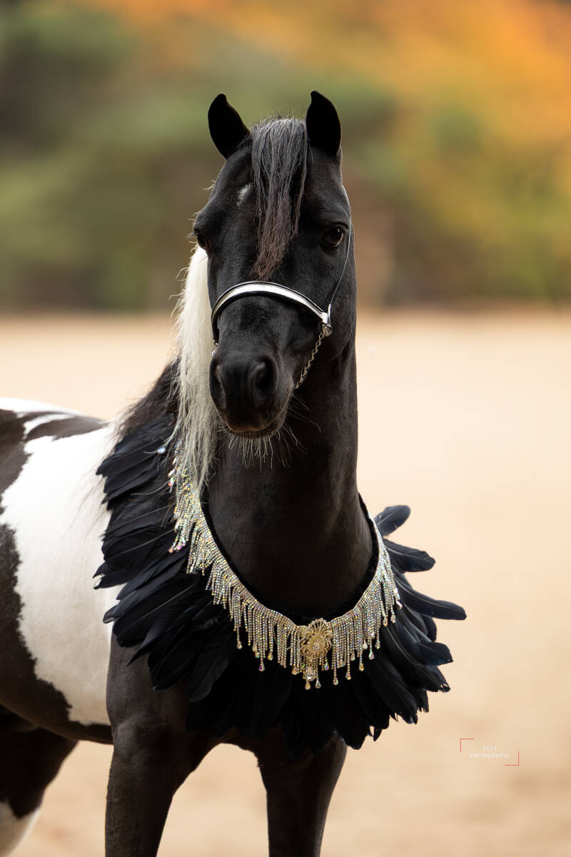 In september 2025 is Noche bij ons komen wonen. Noche is een prachtige, zwart bonte hengst met een uitzonderlijk vriendelijk en mensgericht karakter. Hij kan goed bewegen en heeft een prachtig postuur. We hopen Noche in de toekomst mee te kunnen nemen naar keuringen en shows. Noche is beleerd voor de wagen, dus hopelijk kunnen we ook aangespannen gaan rijden met hem.